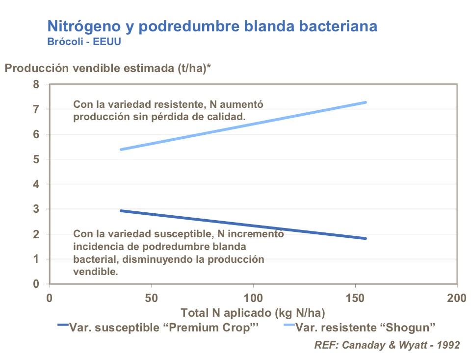 El pecíolo negro aparece debido a un colapso del citoplasma en las células parénquimas y se supone que se asocia con un desequilibrio de potasio y fósforo cuando los niveles de potasio en el suelo son bajos y la concentración de fósforo son altos. Alto nivel de nitrógeno también puede contribuir al problema. El pecíolo negro tiende a ser más evidente en la col después de un tiempo en almacén. Podredumbre blanca puede volverse un problema en brócoli cuando excede la cantidad óptima de nitrógeno.