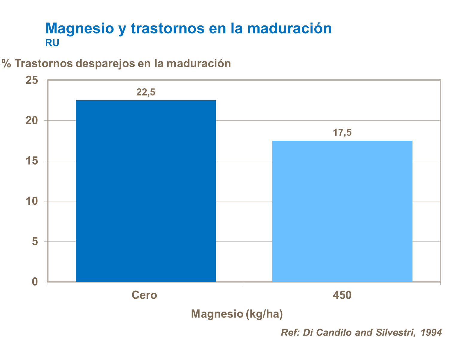 El magnesio es particularmente importante para asegurar la maduración uniforme de frutos bien formados.