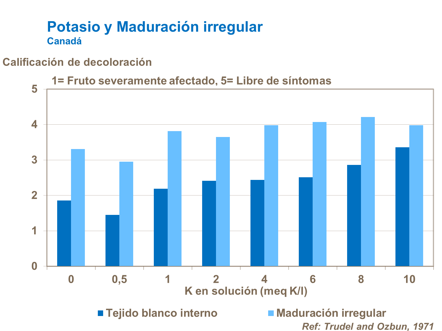Normalmente se asocia con una nutrición potásica insuficiente, aunque otros factores que pueden provocar este problema son las bajas condiciones de luz asociadas a altas temperaturas y una deficiencia de boro.